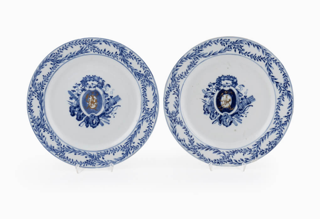 Tallrikar, 2 st, vapenporslin, Qianlong, Kina 1736-95, klubbat för 64 600 SEK.