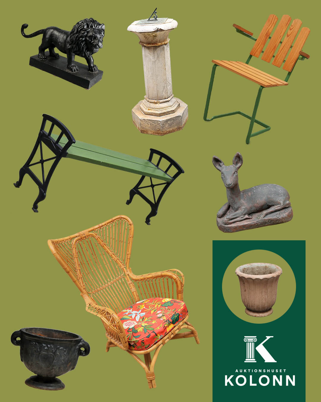 När ljuset har återvänt i april och det snart är dags att spendera mer tid utomhus, går vår temaauktion Garden Life. Vi söker just nu efter föremål som passar perfekt i trädgården, på verandan, balkongen eller terassen, såsom trädgårdsmöbler, krukor, skulpturer, ytterfoder, piedestaler och solur. Vi är också intresserade av objekt som för tankarna till blommande natur och sommarliv, som till exempel vaser, porslin, glas och ytterfoder.